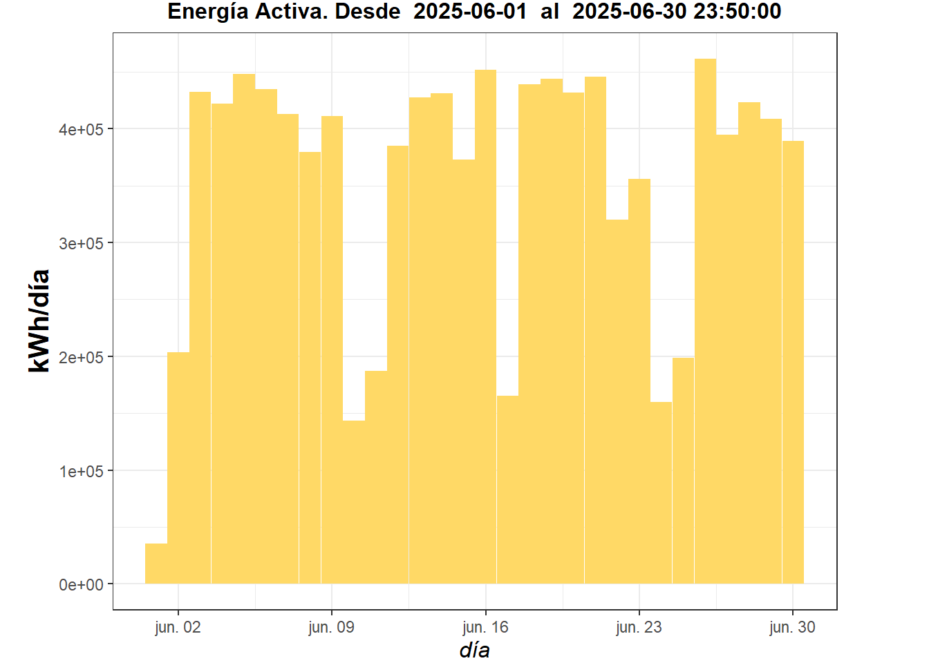 El consumo promedio diario de energía fue de 353,921.55 kWh, ligeramente menor al mes anterior.