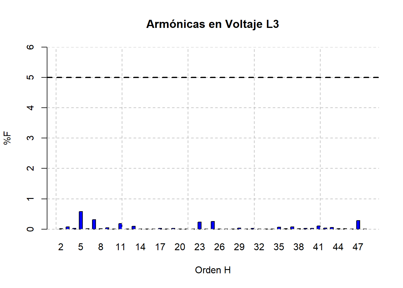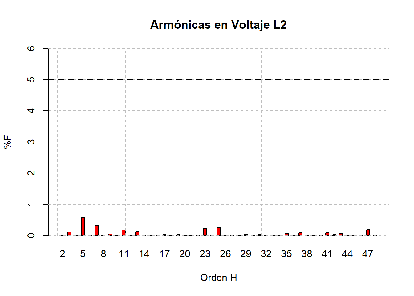 El centro de carga está sujeto a todos los criterios del Código de Red. De acuerdo con las mediciones, dos índices no cumplen: el factor de potencia y la distorsión individual en las armónicas 23ª, 25ª y 47ª.
